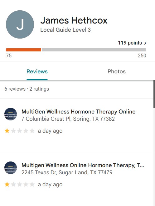 - As you can see in the picture I have left fake 1-Star reviews on MultiGen Wellness. A company being attacked by Eleanor and who is suing Eleanor